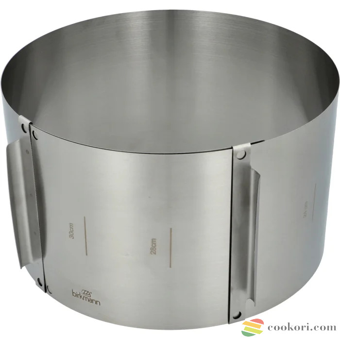 Modern magas torták elkészítését szolgáló rozsdamentes fémből készült, 15cm extra magas, 16-30cm között állítható sütőgyűrű, skálázva.