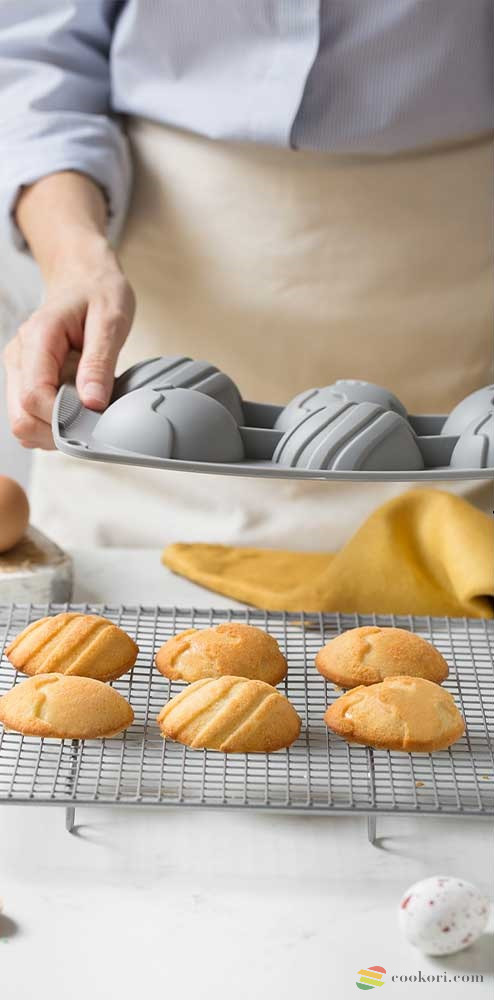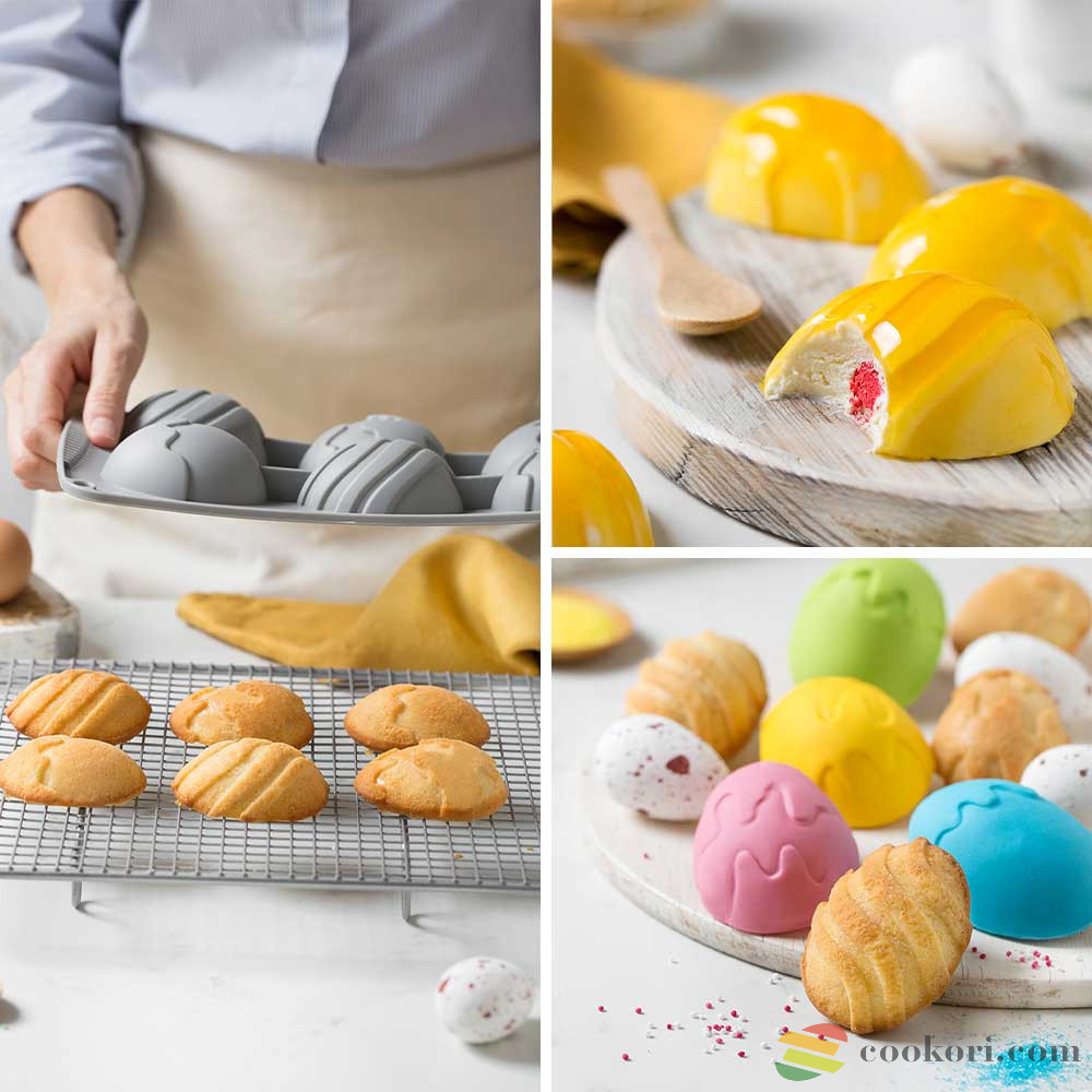Tojás alakú szilikon forma magas minőségű 100% szilikon platinából édes és sós ételekhez, sütéshez és dermesztéshez. A 6 üreges forma mérete 30x17x3 cm, üregek mérete 5,5x7x2,5cm. Nem változtatja meg az ételek ízét. Minőségét megőrzi -40 °C + 230 °C között, mosogatógépben és mikrohullámú sütőben egyaránt használható.