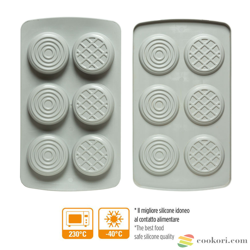Decora újdonsága a 100% platina szilikonból készült 2db-os forma, ideális édes és sós ételekhez, párosítva pedig tökéletesek piskótatallér, egyéb süti és jégkrém szendvics, csokis keksz készítéséhez. A magas forma mérete 30 x 17,5 x3,5 cm, a vékony forma mérete 28,7 x 16,5 x 1 cm. A mélyedések átmérője 6,6cm, mélysége 2,3 cm.