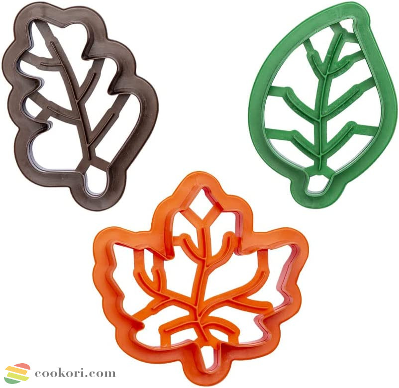 Műanyagból készült 3D-s kiszúró készlet tartalmaz 3 szép ívű levél formájú kiszúrót, melyek mérete 4.5 - 7 x 7 x 2.2 h cm. A kiszúrók külső éle vág, a belső pedig nyomatot hagy a kekszen, édes vagy sós galaton, csokoládén vagy fondanton. Pite díszítésnél és szép eredmény érhetünk el általuk.