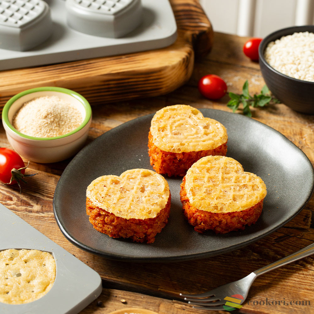 Decora újdonsága a 100% platina szilikonból készült 2db-os forma, ideális édes és sós ételekhez, párosítva pedig tökéletesek szív alakú piskótatallér, egyéb süti és jégkrém szendvics, csokis keksz készítéséhez. A magas forma mérete 30 x 17,5 x3,5 cm, a vékony forma mérete 28,7 x 16,5 x 1 cm. A mélyedések mérete 6,8x6,3cm, mélysége 2,3 cm.