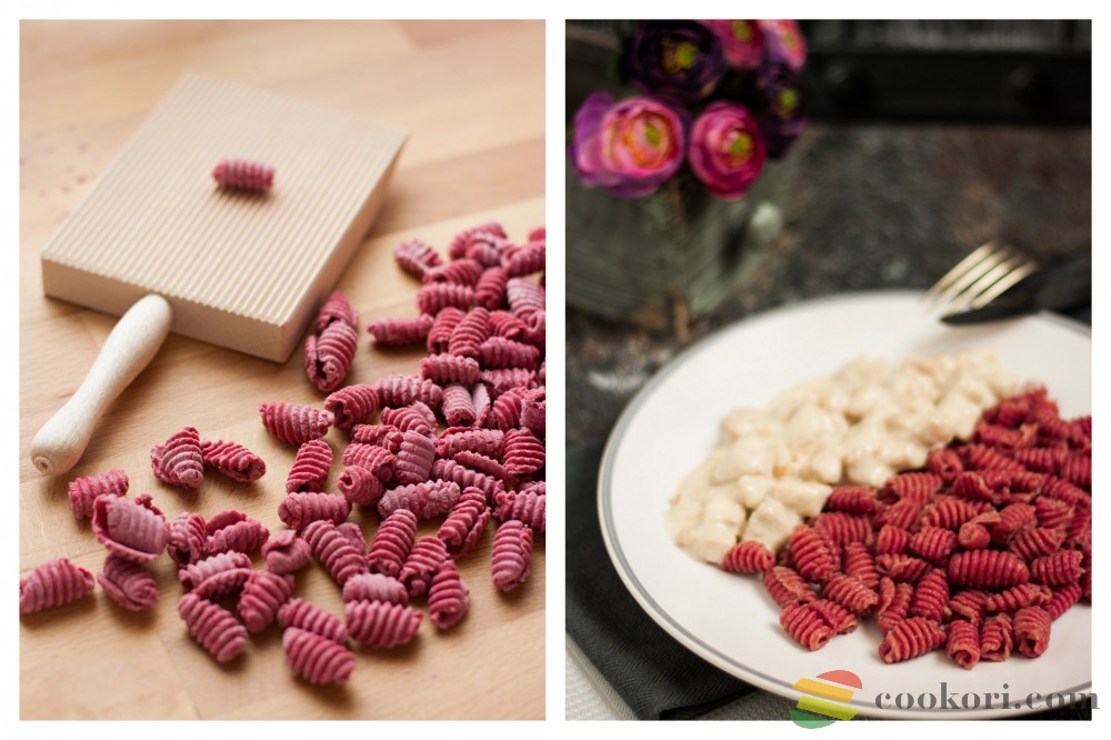 Gnocchi, cavatelli és garganelli azaz tojásos bordázott tészta formázásban segédkező recézett fából készült eszköz pödrőfával. Teljes mérete 21x9cm, bordázott felület 12,5x9cm.