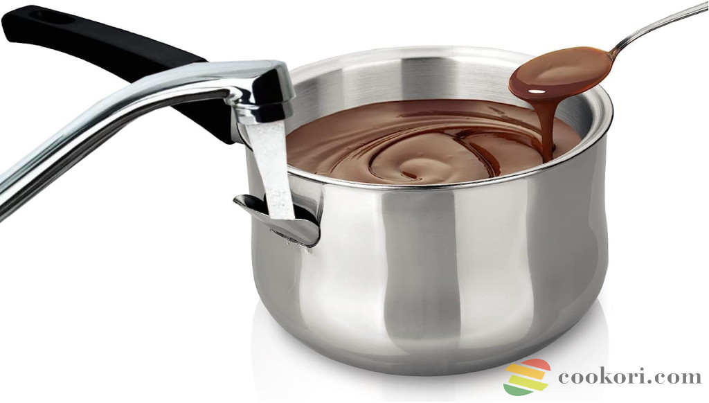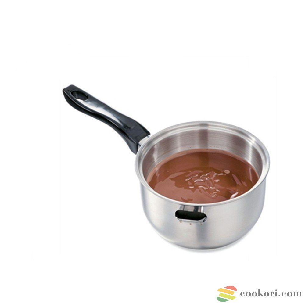 Csokoládé olvasztást, nagy odafigyelést igénylő krém készítést szolgál ez a minden tűzhely típuson alkalmazható, rozsdamentes acélból készült, duplafalú edény, melynek átmérője 16cm, magssága 9cm, űrtartalma 1liter. A csőrön keresztül vizet töltünk az edény két fala közé, odatesszük melegedni és már el is kerüljük, hogy a csoki vagy krém oda égjen. Mosogatógépben mosható, minden típusú tűzhelyen használható.