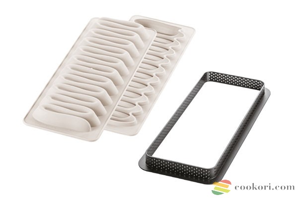 A Silikomart Tarte Nouvelle Vague fantázianévre hallgató tarte készlet egy innovatív 3D szilikon formából és egy mikroperforált gyűrűből áll. A 3D forma különleges belső peremmel rendelkezik, amely enyhén lekerekített alapot ad az elkészült süteménynek, ezzel elegáns, modern megjelenést kölcsönözve.
