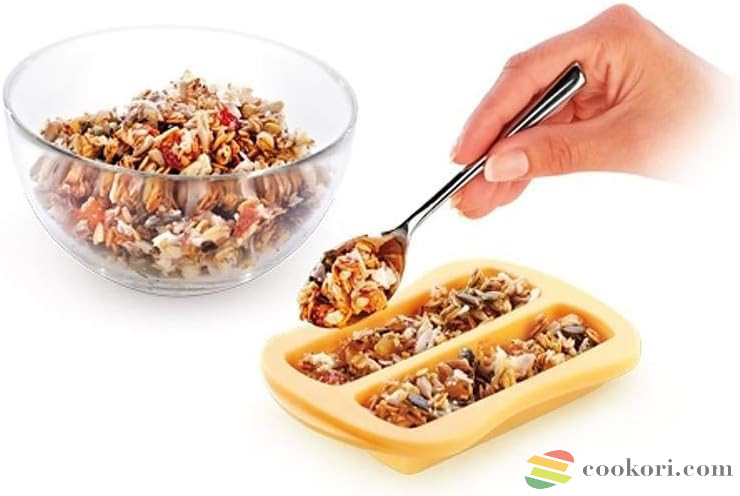 Kiválóan alkalmas otthoni müzliszeletek sütésére vagy alkalmazható formaként a DELLA CASA egészséges müzlipréshez (art. 643188). Első osztályú hőálló szilikonból készült, minden típusú sütőben alkalmazható, beleértve a mikrohullámú sütőt is, mosogatógépben is mosható. Mérete 10x14x2,5cm.