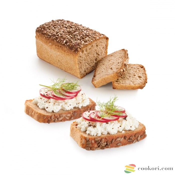 Magas minőségű szilikonból készült sütőforma, melyben a kb. 500gr-os teljeskiörlésű vagy gluténmentes szendvicskenyér is 220C fokon 35 perc alatt megsül és könnyedén kifordítható a formából. Méretei 12x22cm, magassága 7cm. Gáz,elektromos és légkeveréses sütőben, valamint mosogatógépben egyaránt használható. Minőségét 250C-ig megőrzi. Ne olajozzuk, csak gyakori mosogatógépben tisztítás esetén, ne használjunk benne dörzsit és éles vágóeszközt. Soha ne tegyük a forró sütőbe üresen a sütőformát!