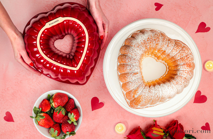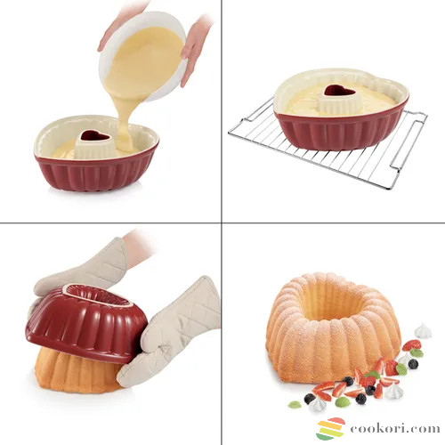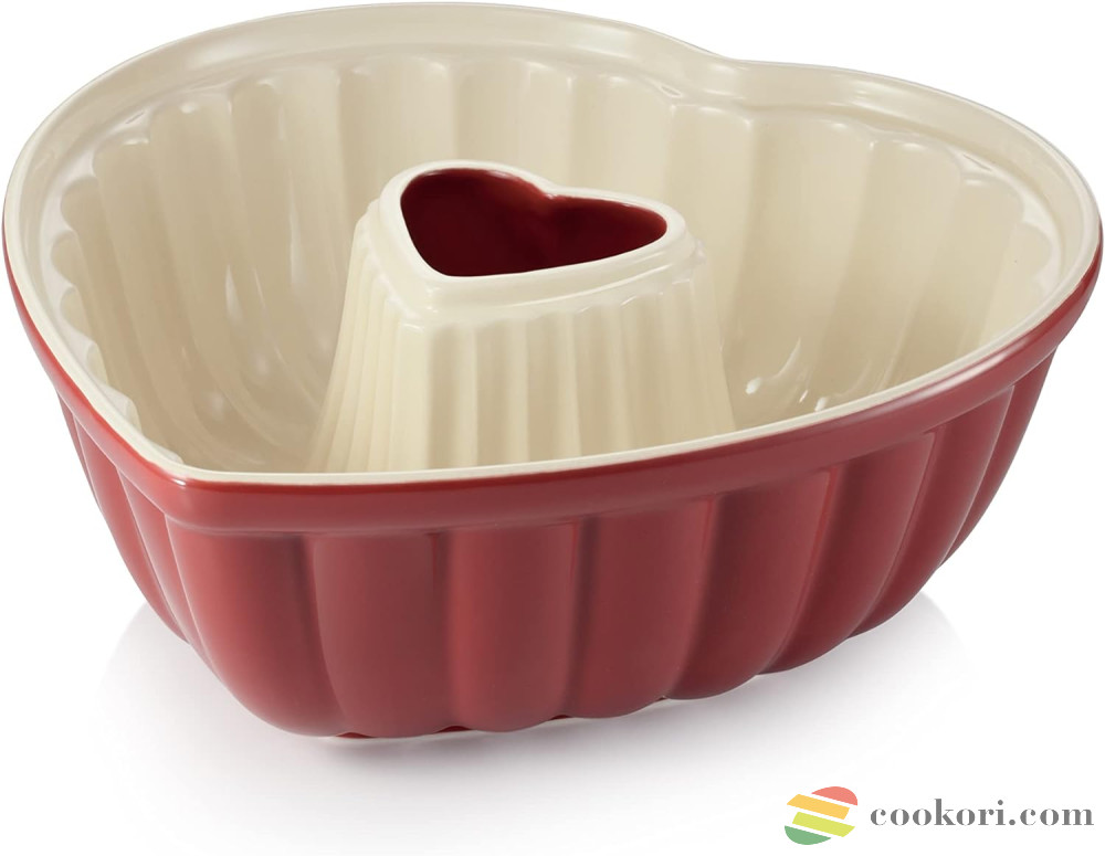 Tescoma újdonsága ez a csodaszép piros 28x27x10cm-es kerámia szív alakú sütőforma. Kuglóf, kenyér, kelt tészta sütésre egyaránt alkalmas. Sütés előtt fújjuk be sütő spray-el vagy vajazzuk ki, majd lisztezzük be. Mosogatógépben is tisztítható.
