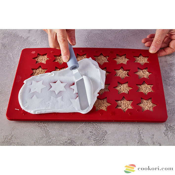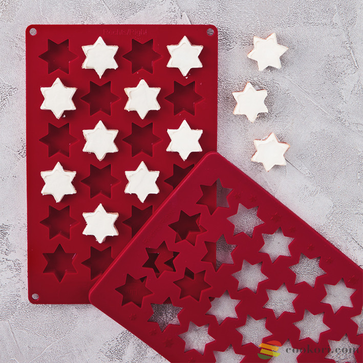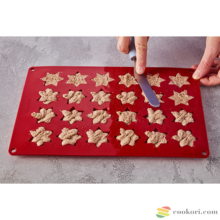 A fahéjas csillag sütőlap 2 darabból áll, mérete 31.7 x 1.5 x 21.7 cm és egyszerre 24 mázas csillag sütését, dermesztését és dísztését teszi lehetővé.