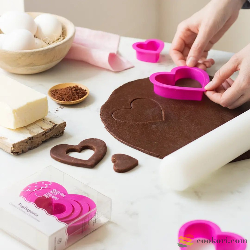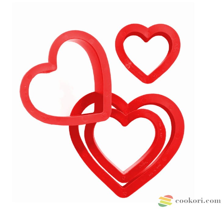 Kitűnő minőségű műanyagból készült szív alakú 4db-os kiszúró készlet mézes, linzer, fondant, édes és sós keksz valamint tészta szaggatáshoz. A kiszúrók mérete 4–5–6–8cm, magasságuk 2,2cm.