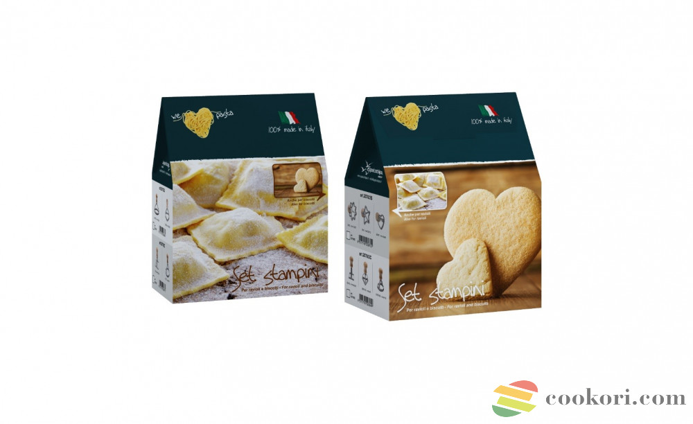 Fa nyéllel ellátott, aluminiumból készült derelye, ravioli, töltött tészta, keksz, mini pizza szaggatásához alkalmas 2db-os kiszúró készlet tartalmaz egy 8,5x8,5cm-es szív alakú és egy 10,5x5cm-es ovális kiszúrót. Dobozos csomagolásban szállítjuk.