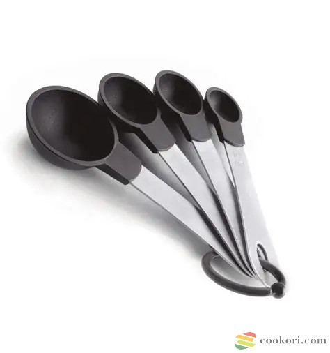 4db-os mérőkanál készlet, a mérőkanalak mértéke 1/2 és 1 evőkanál (1tbsp = 15ml) valamint 1/2 és 1 teáskanál (1 tsp= 5ml). Az eszköz mérete 14x4,5cm, mérő kanala műanyag, nyele fém. Könnyű kimérni vele bármilyen süti hozzávalóját, de szükség esetén a gyógyszer adagolásban is segít.