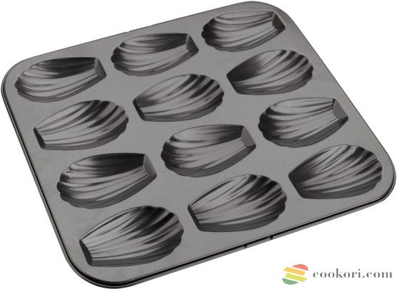 Tapadásmentes sütőforma, 12db 7x4cm-es mélyedéssel madeleine készítéshez. Ez az aprósütemény számtalan variánsban készíthető, megunhatatlan. Télen gazdagíthatjuk apró aszalt gyümölccsel, nyáron pedig málna, ribizli, áfonya, eper egyaránt kerülhet bele.
