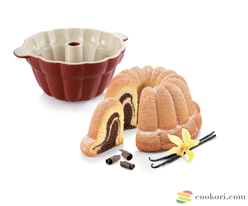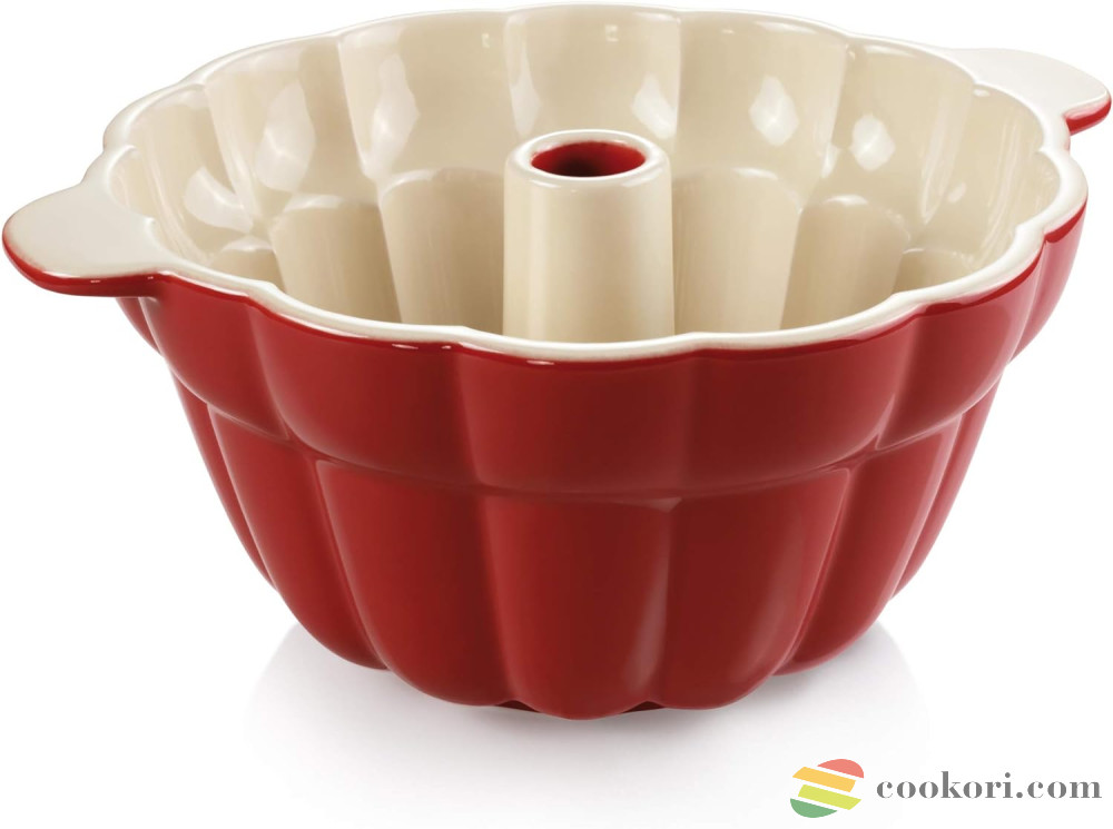 Örök sláger a csodaszép piros 28,5x12,5cm-es kerámia kuglóf forma, melyben kissebb és nagyobb kuglóf egyaránt süthető. Sütés előtt fújjuk be sütő spray-el vagy vajazzuk ki, majd lisztezzük be. Mosogatógépben is tisztítható.